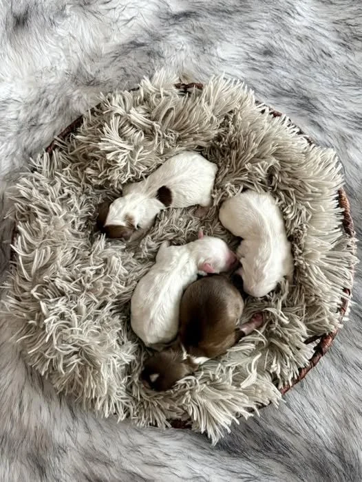 Aspen is tiny creamy white puppy, we are excited to see her eyes open!