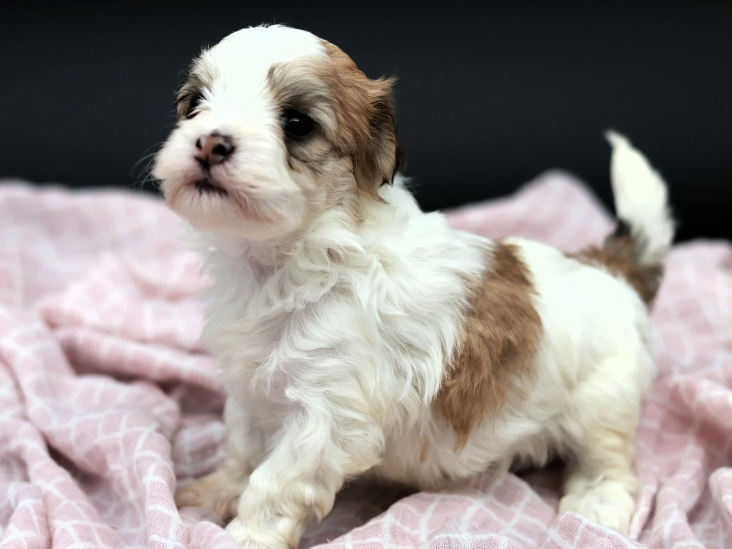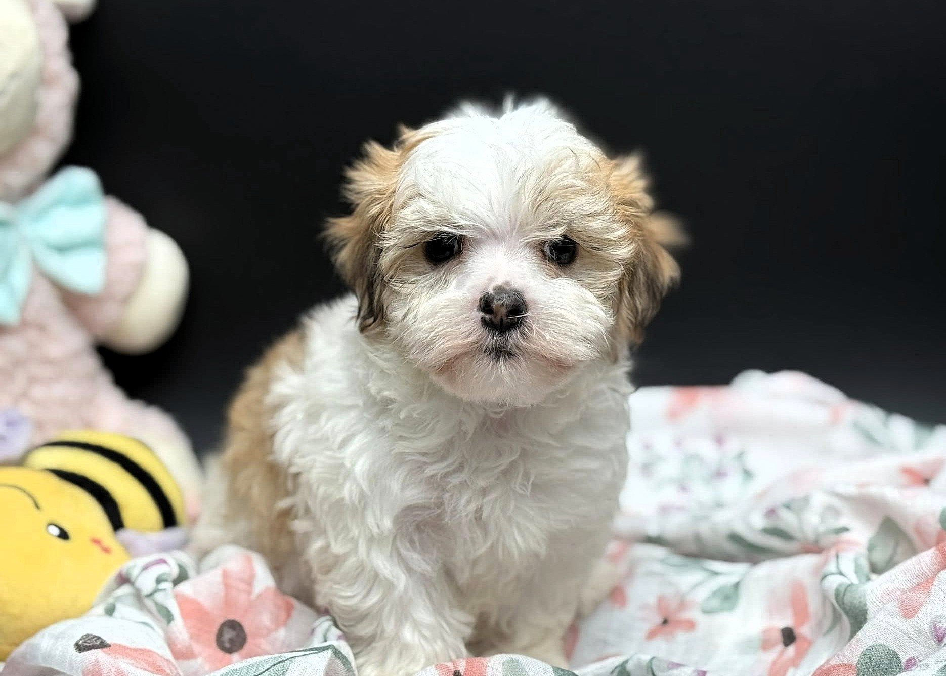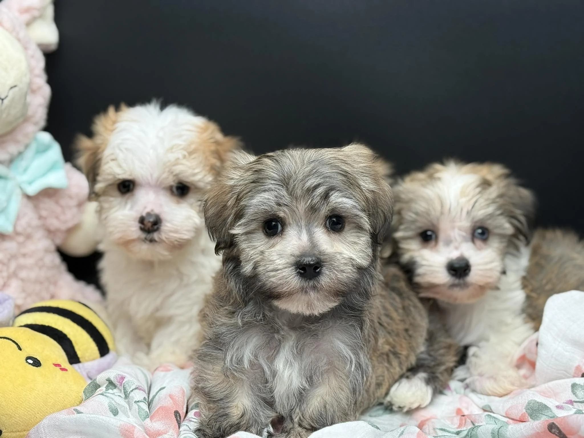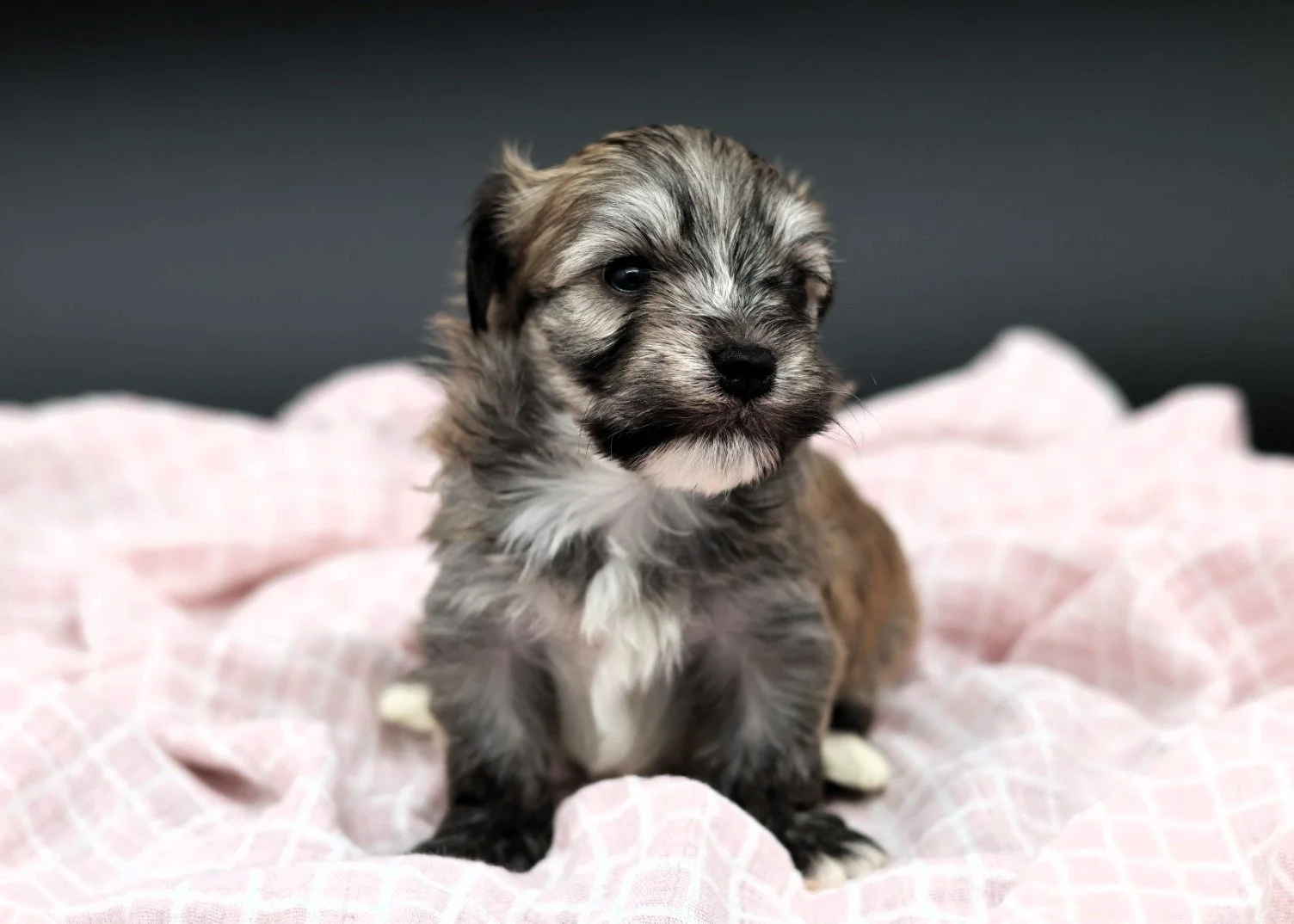 Austin is charting 7-8lbs. This sweetie pie has heterochromia(one blue eye and one dark brown eye). Heterochromia is super rare in Havanese. He was born with it and has no health issues. Austin is the calmest of his siblings but he is always down for playtime.